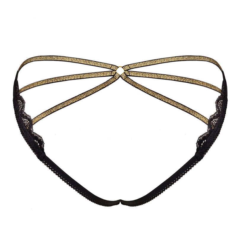 Estas bragas negras únicas y extraordinarias encarnan la feminidad, el atractivo sexual y la sensualidad. La sutil espalda, que combina una sutil decoración de encaje con expresivas tiras que realzan los glúteos, le da carácter y la distingue de otras opciones clásicas. Las Panty Muled también logran un equilibrio perfecto entre la delicadeza del encaje y su tono negro oscuro, que se ve interrumpido en parte por rayas brillantes.